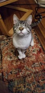 Tamera contacted us and within just a couple of days she came and adopted Snowy. Once they got home, she gave him his forever name, Stevie Tiresias the Wonder Cat, or Stevie T. for short. We think it’s the perfect name! He is in a home full of love and attention and is the king of the house. Stevie T has come out of his shell and is loving his life. Let me tell you guys, I have never seen him sit so straight and so proud. You can just tell that he is one happy cat!